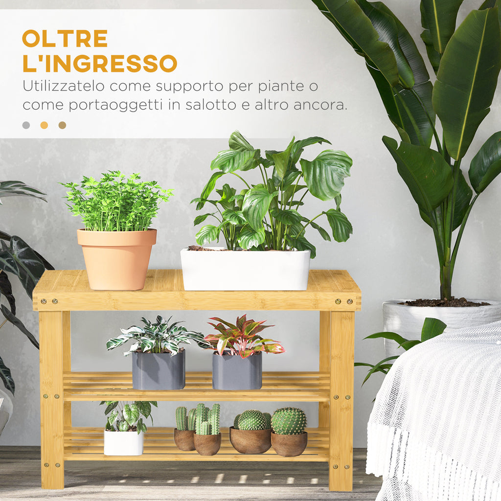 Panca Scarpiera 70x28x45 cm con 2 Ripiani a Doghe e Seduta in Bambù