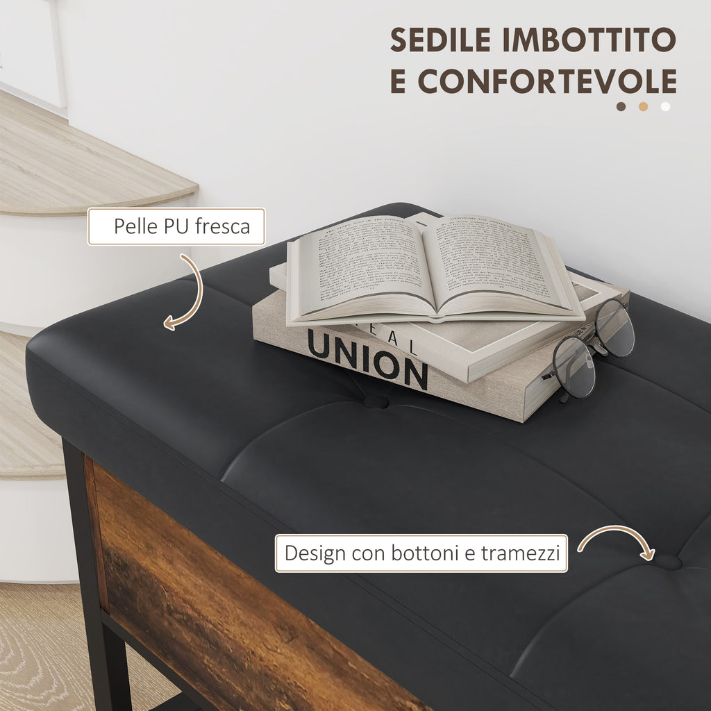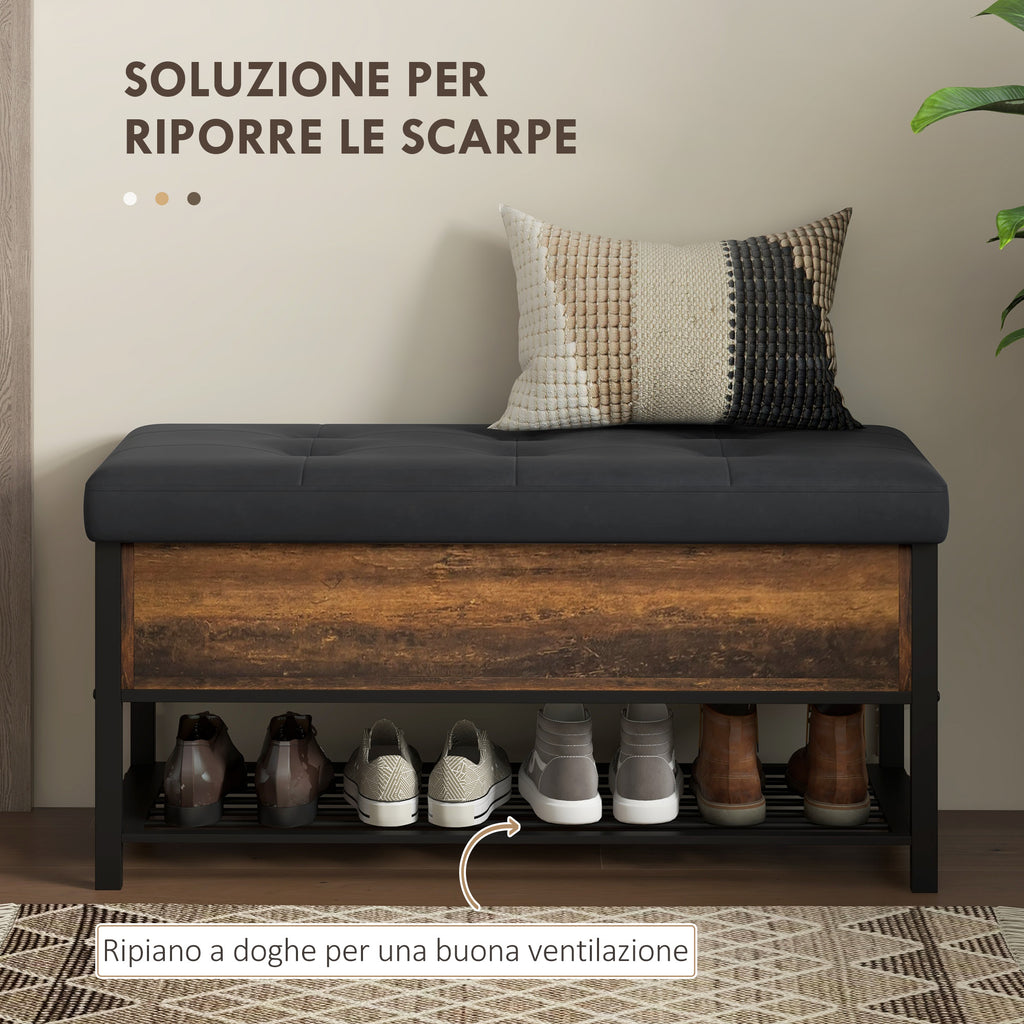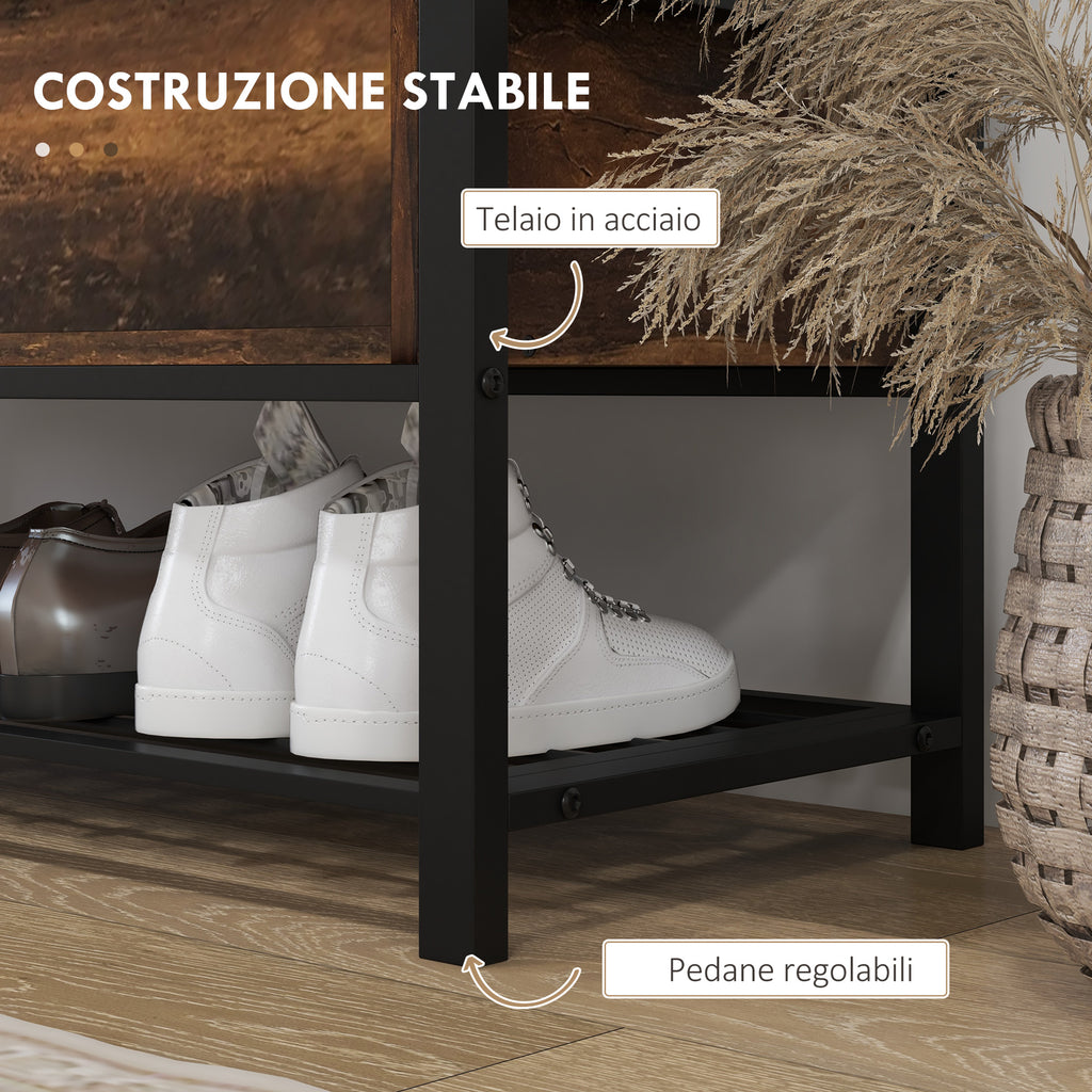 Panca Scarpiera da Ingresso Industriale con Ripiano Nascosto 100x40x50 cm in Truciolato e Acciaio Marrone e Nero