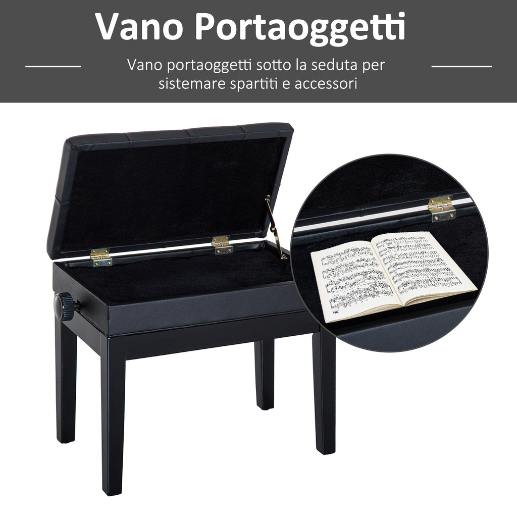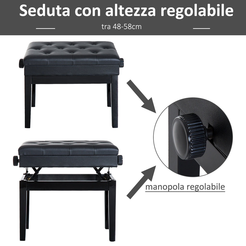 Panca Sgabello per Pianoforte con vano portaoggetti altezza regolabile 54.5x33x48-58 cm Nero