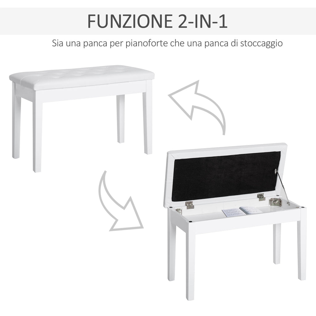 Panca Sgabello Pianoforte con Vano Portaoggetti in Similpelle e Legno 76x36x50 cm Bianco