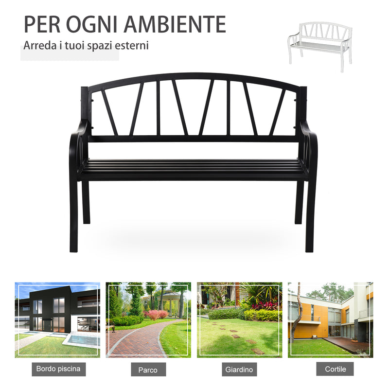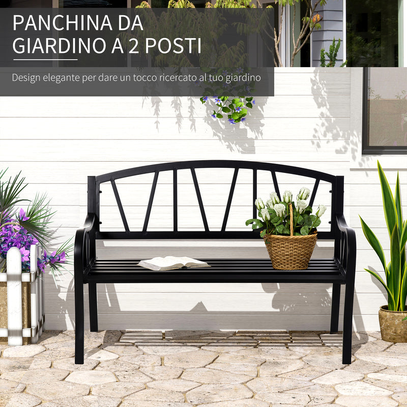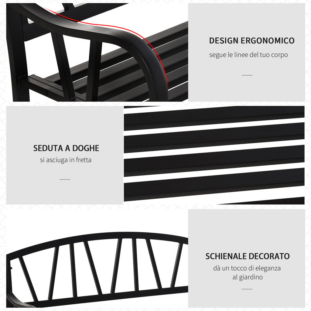 Panchina 2 Posti da giardino 128x56x86 cm in Metallo Nero