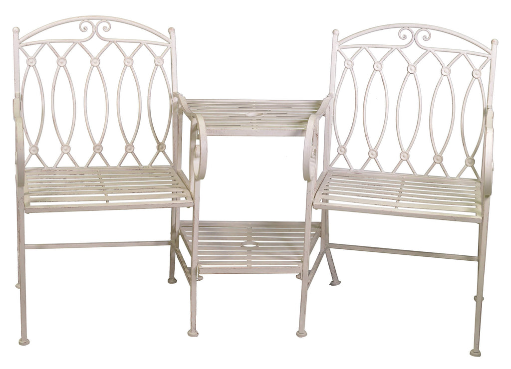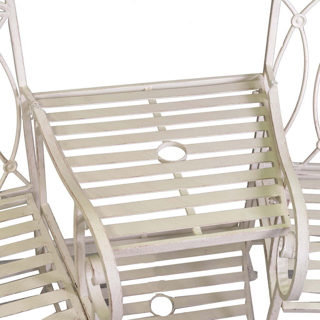 Panchina 2 Posti da Giardino con Tavolino 155x68,5x91,5 cm in Ferro Ragusa Bianca