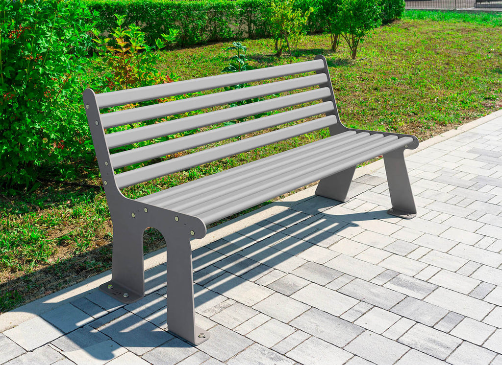 La struttura di questa panchina è realizzata in acciaio zincato a caldo, che garantisce una lunga durata e richiede una minima manutenzione. Viene fornita smontata in kit, composto da seduta, schienale e fianchi. Ogni kit è completo di accessori di montaggio, di fissaggio al terreno e di un manuale di istruzioni. Questa panchina è ideale per essere utilizzata in parchi pubblici, giardini privati, aree comuni condominiali, percorsi pedonali e ciclabili, passeggiate in lungomare, centri storici e piazze. Con le sue dimensioni offre un ampio spazio per rilassarsi e riposare all'aperto, portando la comodità di casa in spazi esterni.