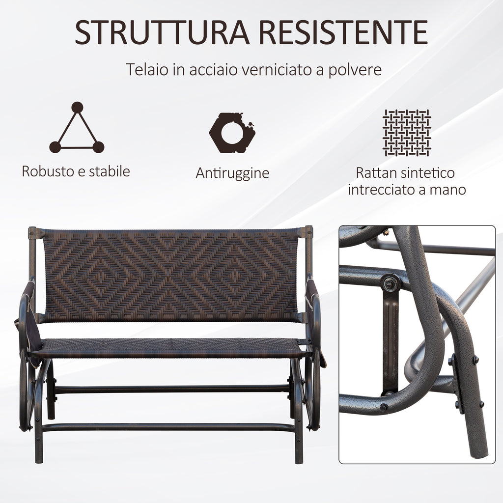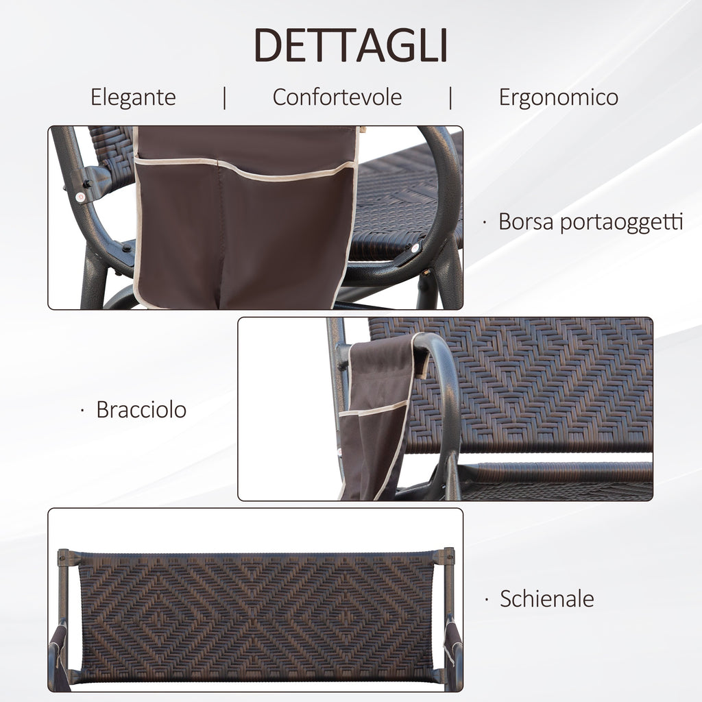 Panchina a Dondolo 2 Posti da Giardino 122x75x88 cm in Rattan Marrone