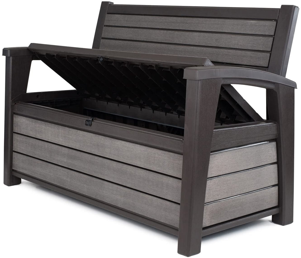 Hudson Storage Bench è una soluzione versatile e multifunzionale che fornisce una comoda seduta per adulti e, allo stesso tempo, un vano contenitore dalla capacità di 260 litri capace di mantenere il contenuto asciutto e ventilato. Realizzato con resina durevole e resistente che non marcisce, arrugginisce e che non necessità di manutenzione.