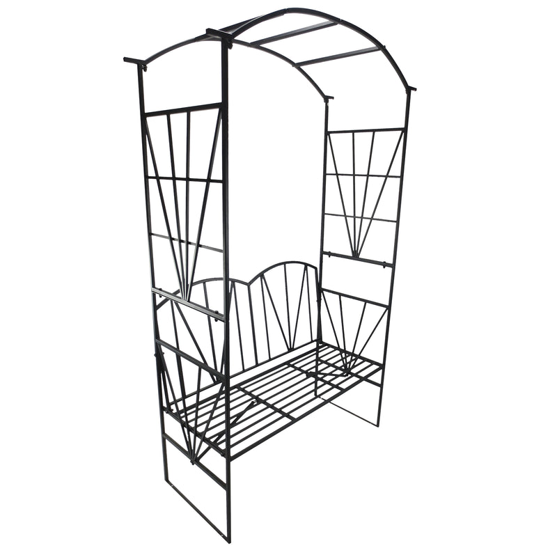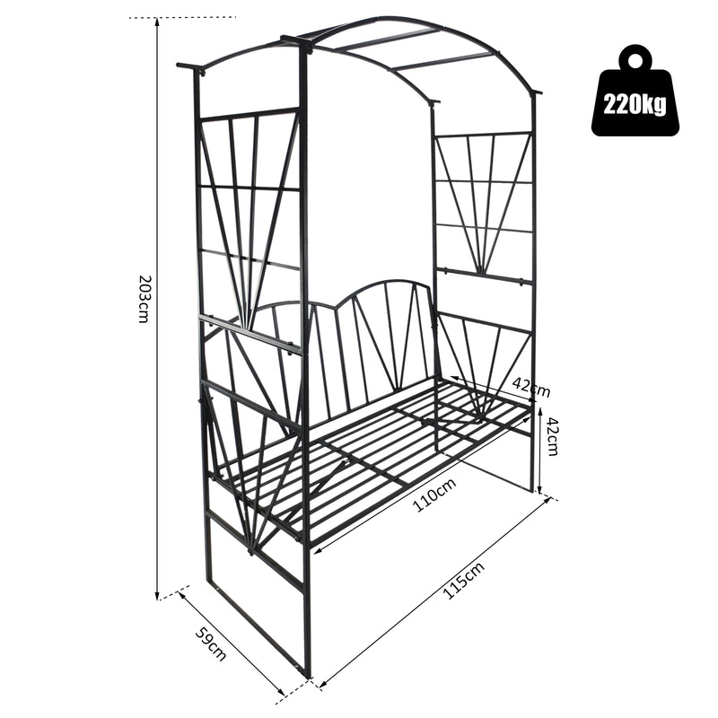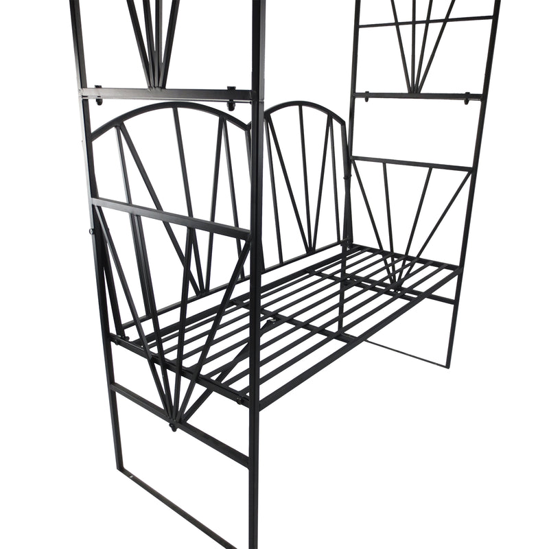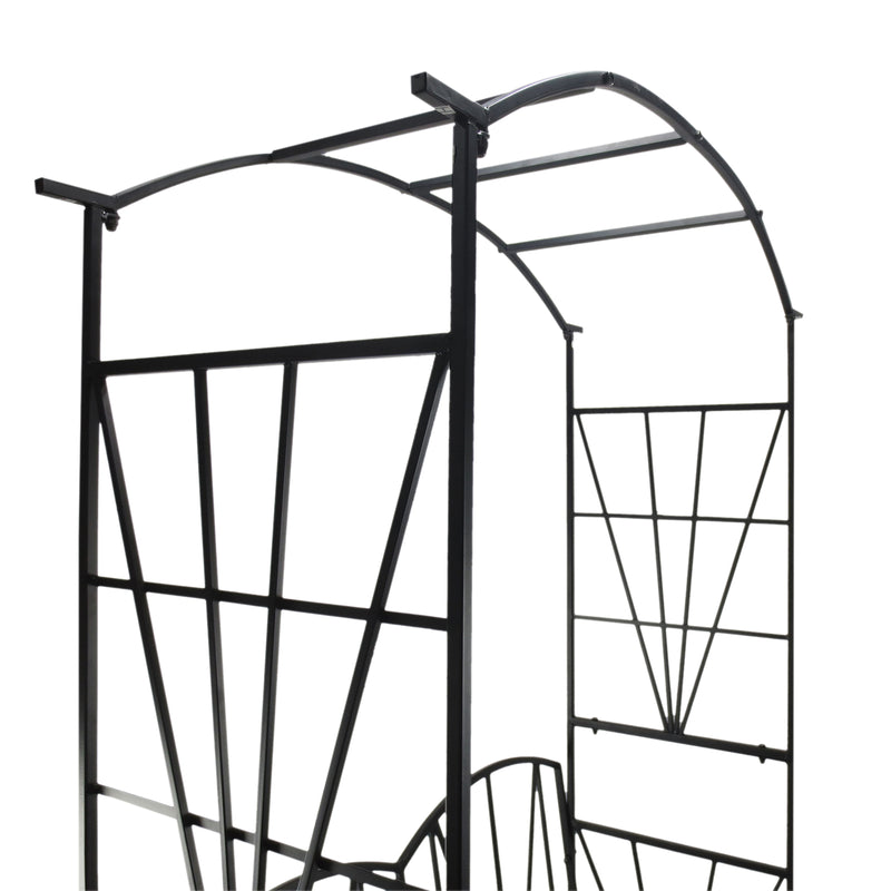 Panchina da Giardino 2 Posti con Arco Rampicanti per Piante Nero 115x59x203 cm
