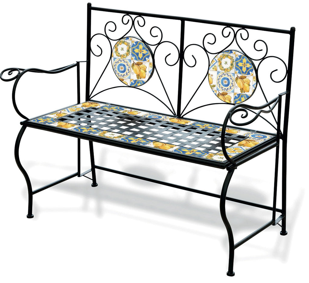 Panchina da Giardino 2 Posti in Ferro con Mosaico Soriani Tuscany Nero