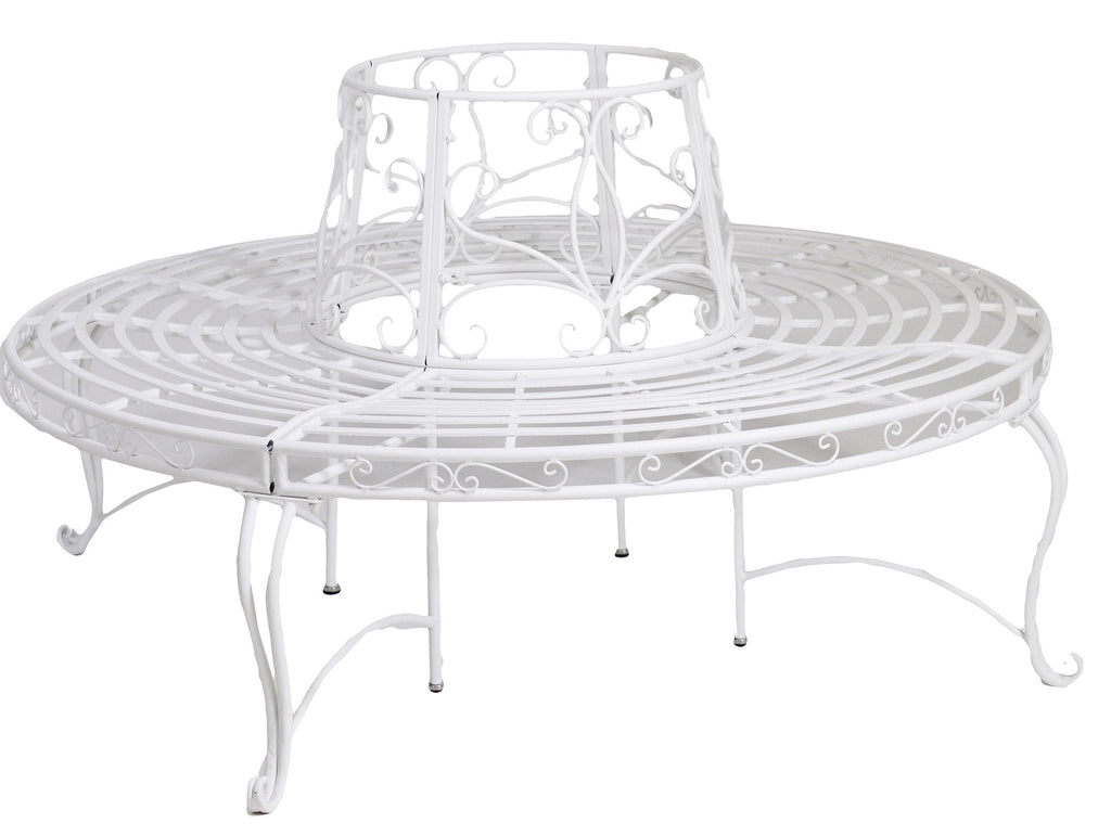 Panchina Rotonda da Giardino in Metallo Ø151 cm Altezza 78 cm Bianca