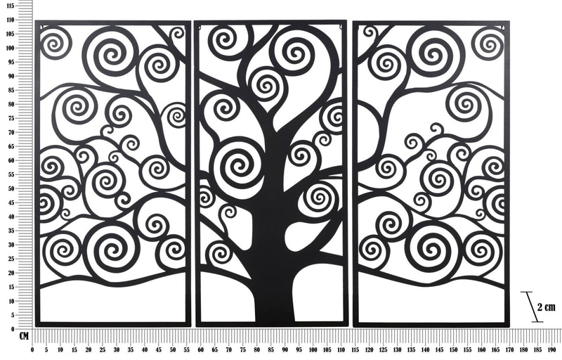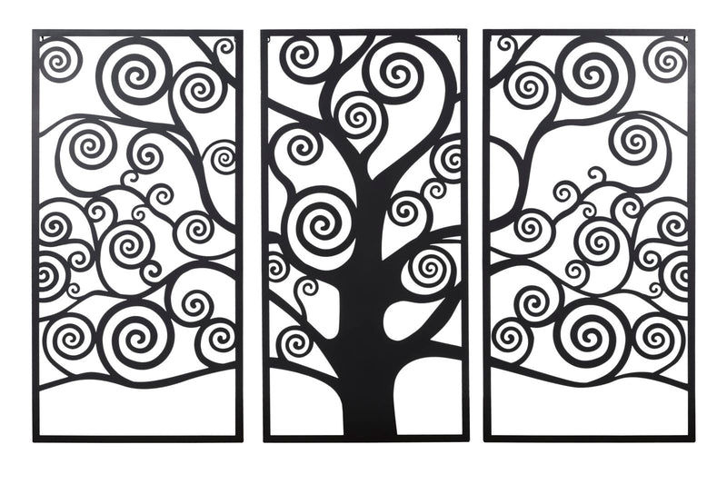 Pannello Albero della Vita Nero Set 3Pz 165x2x110 cm in Ferro Nero