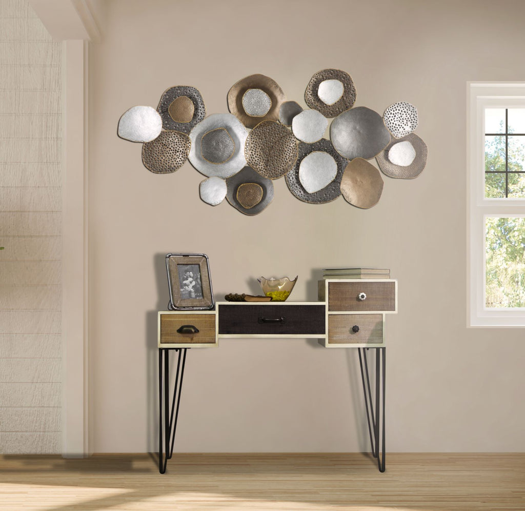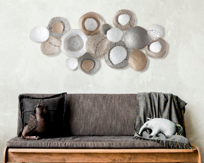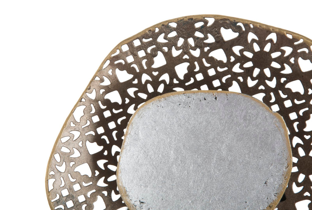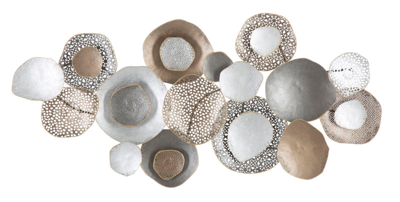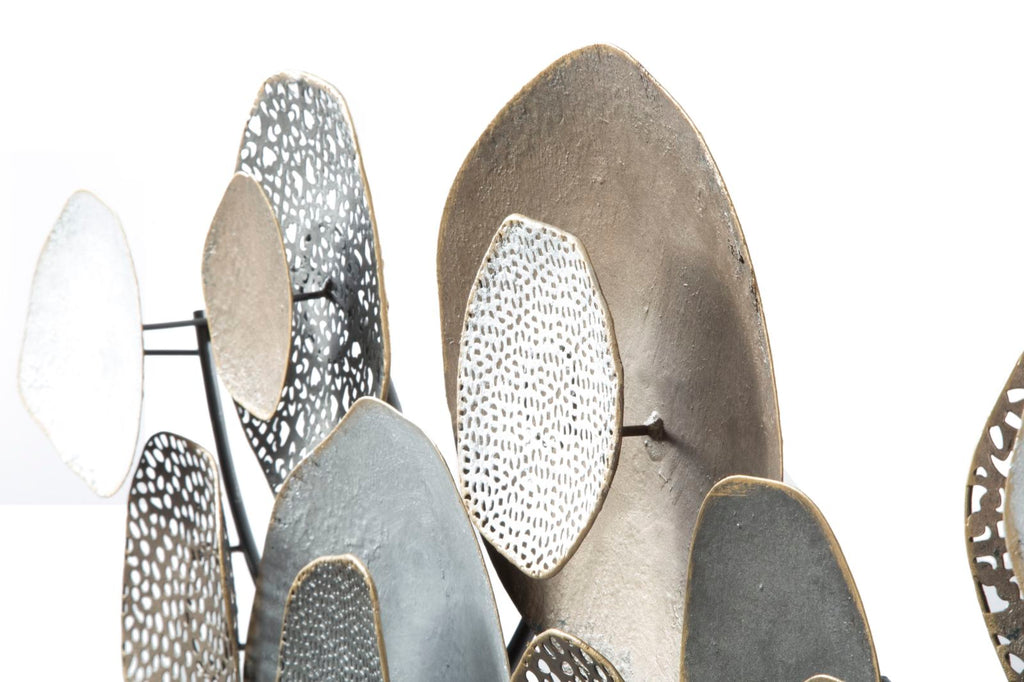 Pannello astratto in metallo. I pannelli 3D sono il nuovo trend per decorare le pareti. Il metallo si declina in forme geometriche, vegetali o animali che conferiscono un'allure glamour e sorpendente ad ogni ambiente