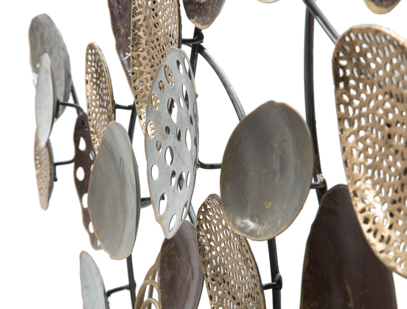 Pannello astratto in metallo. I pannelli 3D sono il nuovo trend per decorare le pareti. Il metallo si declina in forme geometriche, vegetali o animali che conferiscono un'allure glamour e sorpendente ad ogni ambiente
