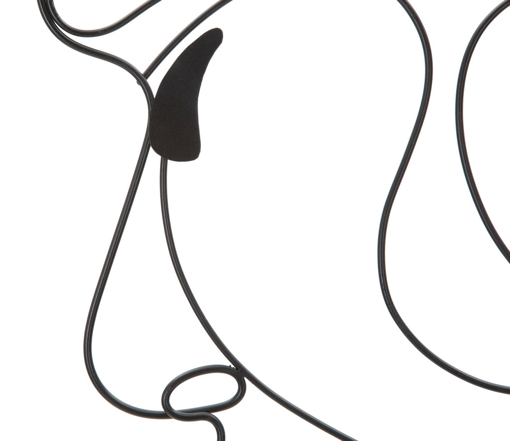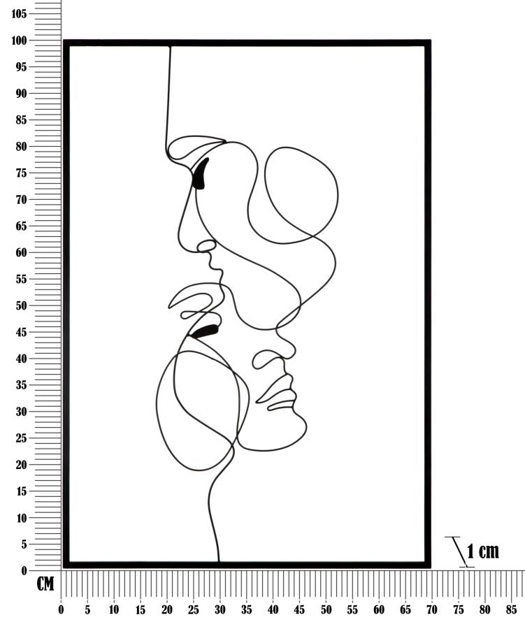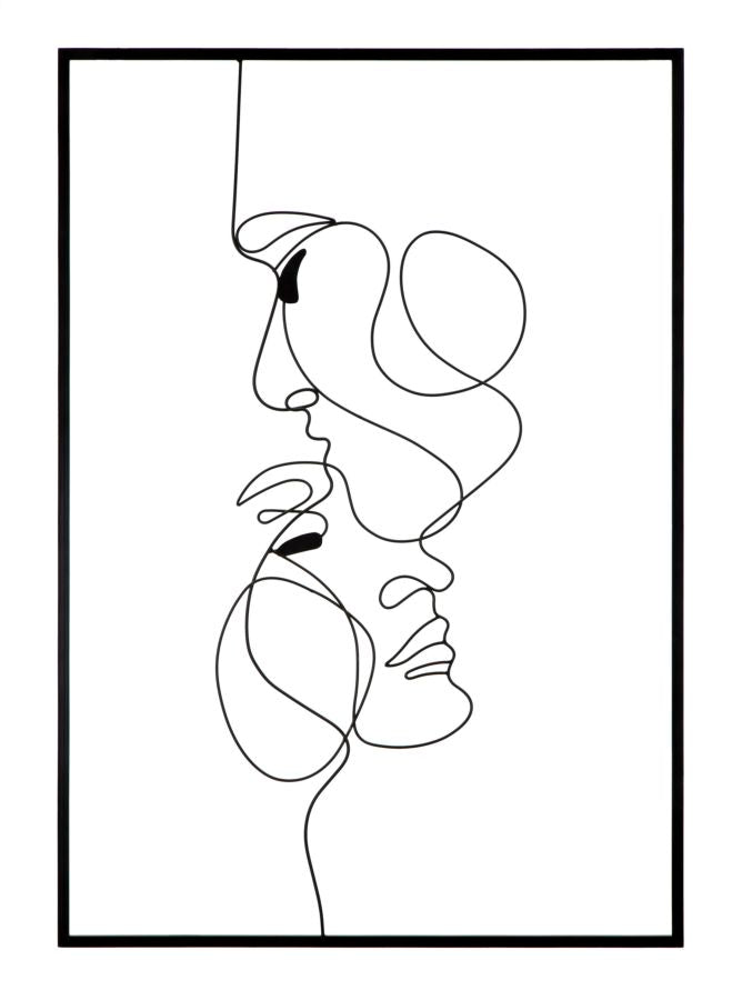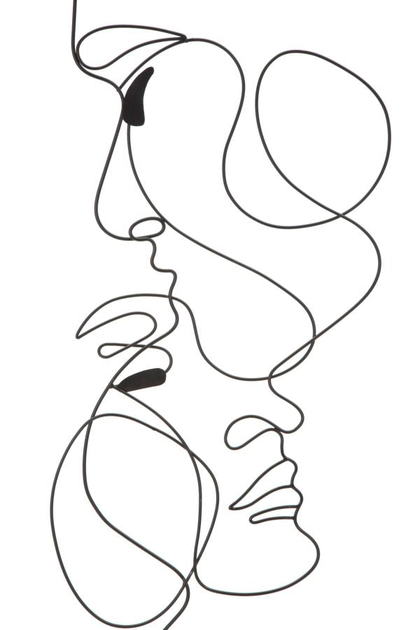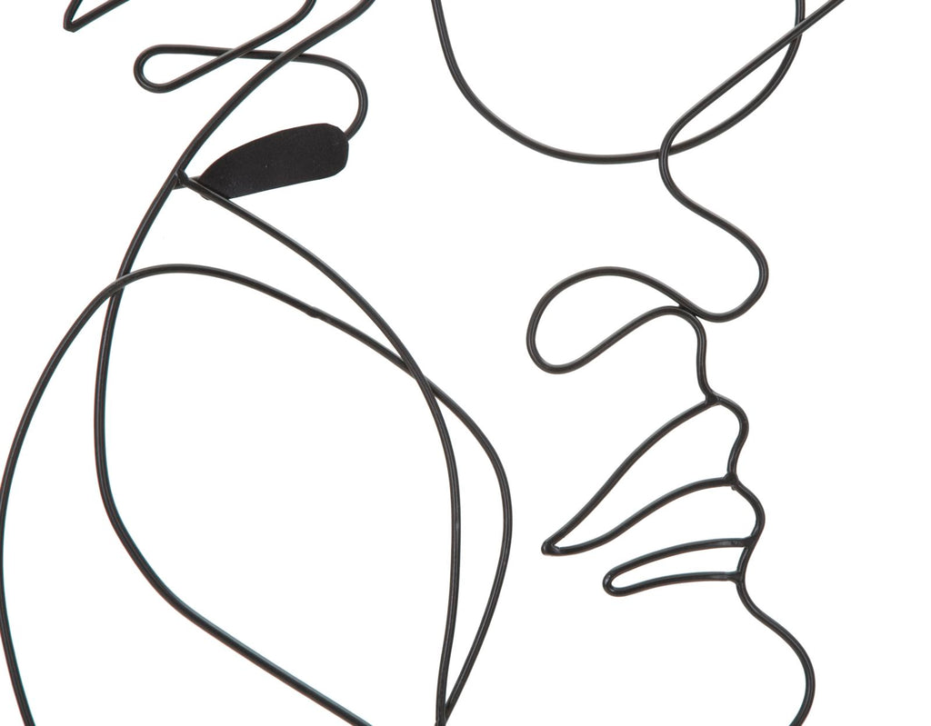 Pannello decorativo 3D in metallo dalle linee che si intersecano a creare due volti. Il design richiama il simbolismo e l'astrattismo.