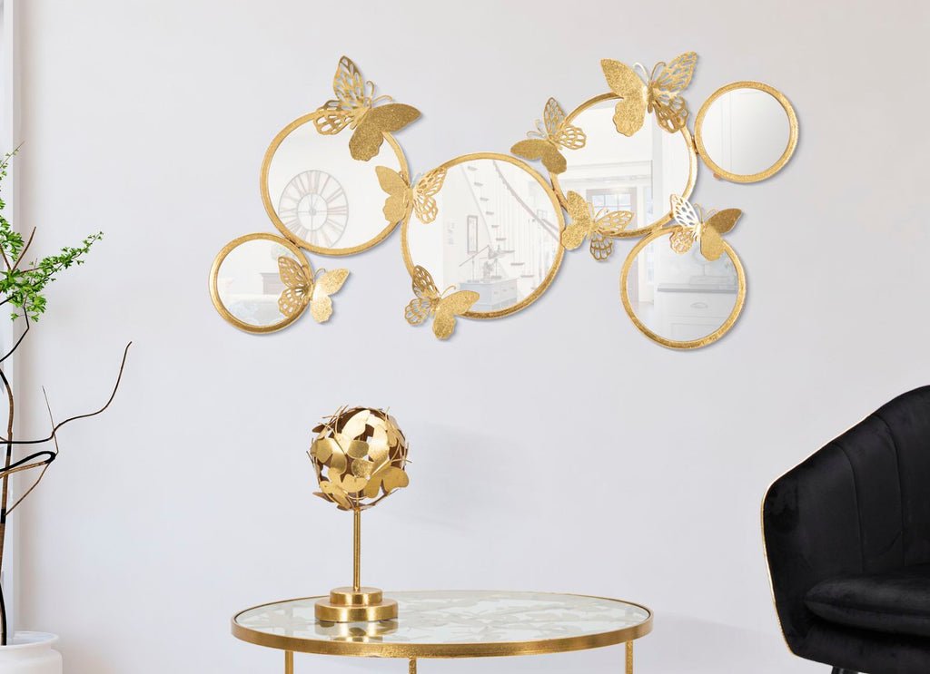 La nostra collezione di specchi rotondi da parete dorati è certamente un elemento di grande raffinatezza per la tua casa. Disponibili in diverse misure, questi specchi aggiungono un tocco di lusso e glamour ad ogni ambiente. Le cornici sono splendidamente decorate con farfalle intricate, testimoniando la maestria artigianale e aggiungendo un tocco di grazia e bellezza ad ogni specchio. Scegli tra le diverse opzioni e aggiungi un elemento di eleganza alle tue pareti.
