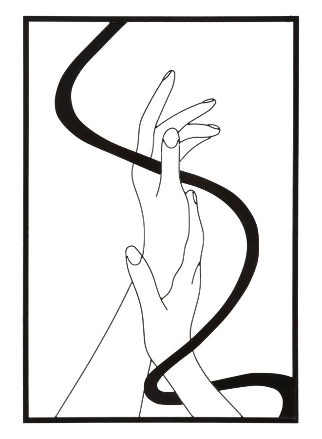 Il pannello decorativo 3D da parete è caratterizzato da un design minimalista e pulito. Le linee semplici ed essenziali si combinano per creare un'immagine di due mani avvolte da un elegante nastro. Il tutto è racchiuso in una cornice rettangolare che aggiunge un tocco di raffinatezza. Questo pezzo di arte è perfetto per arricchire e decorare qualsiasi ambiente, aggiungendo un tocco di eleganza e stile.