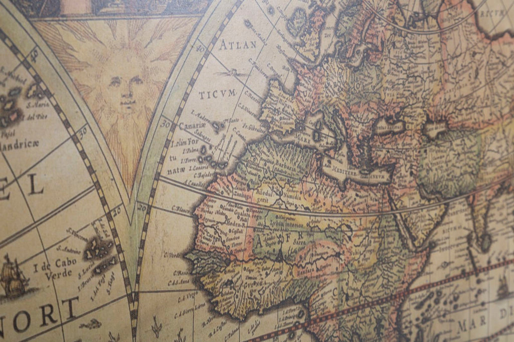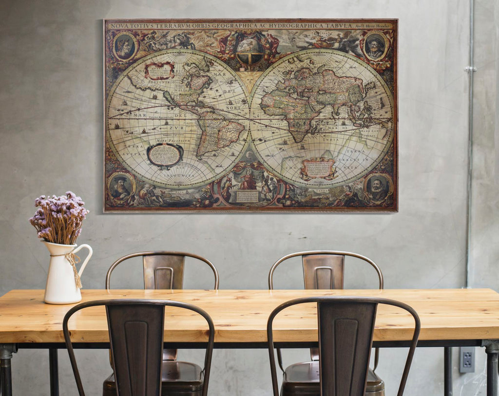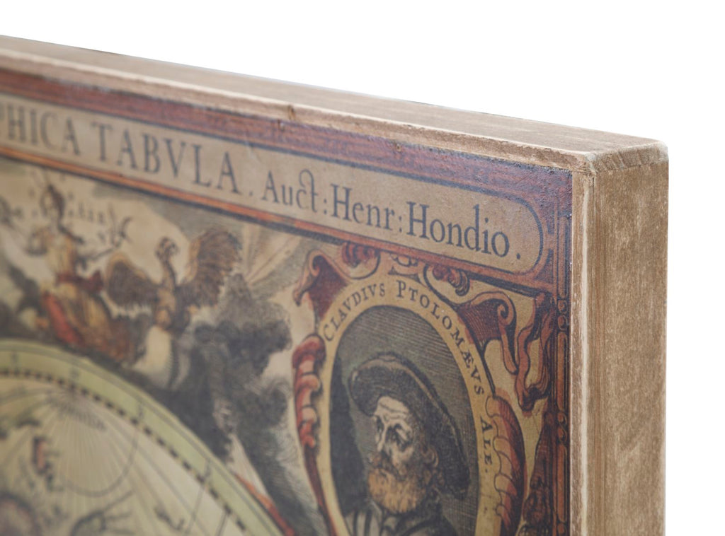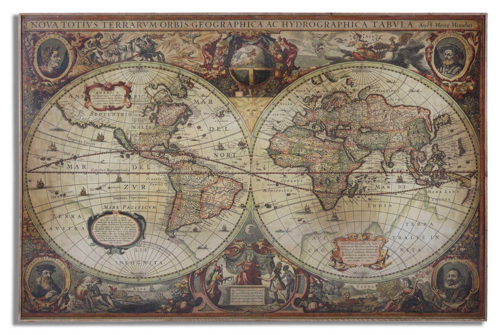 Elegante pannello da parete in mdf raffigurante un planisfero. Il particolare disegno richiama alla mente le mappe antiche.