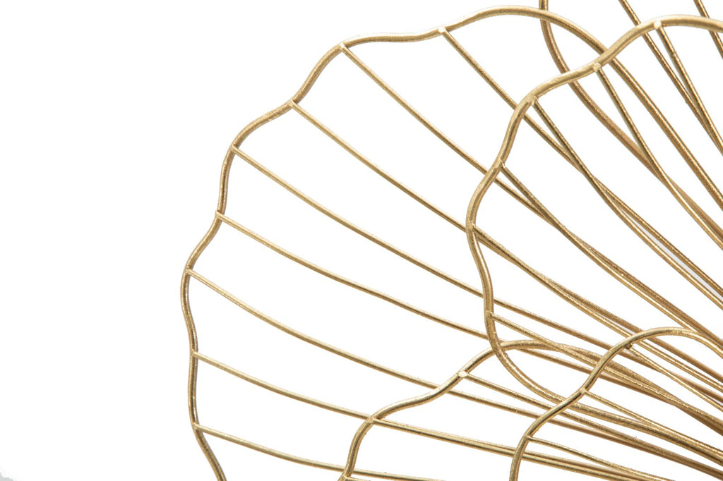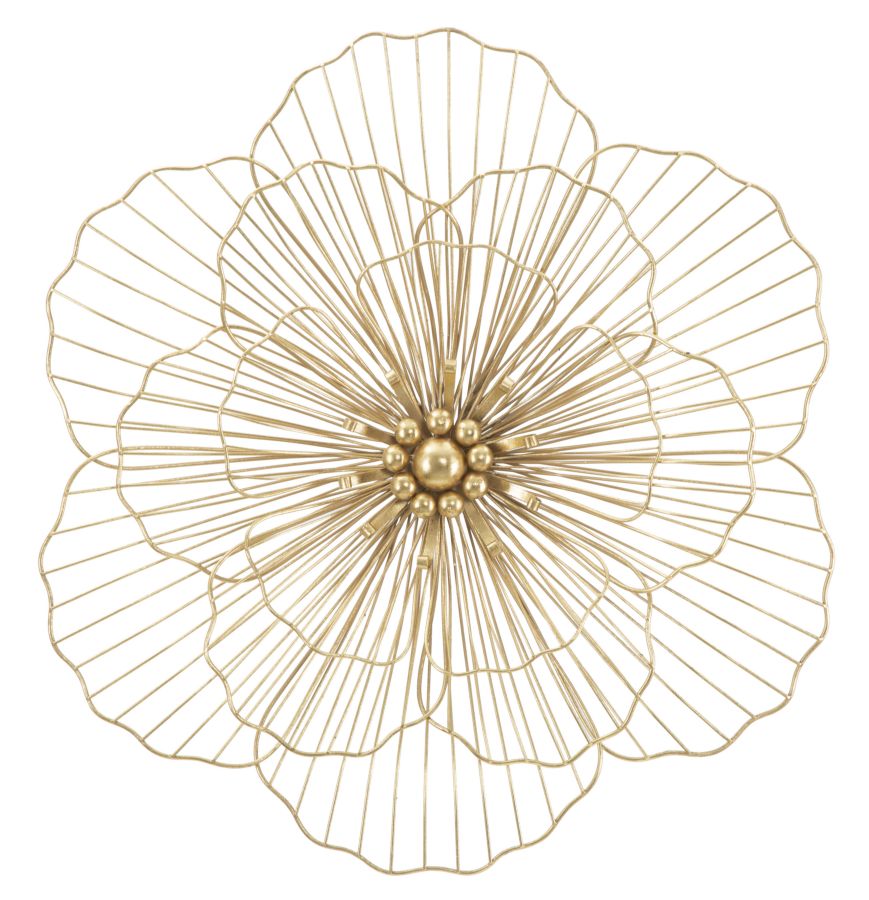 Pannello fiore in metallo dorato. I pannelli 3D sono il nuovo trend per decorare le pareti. Il metallo si declina in forme geometriche, vegetali o animali che conferiscono un'allure glamour e sorpendente ad ogni ambiente