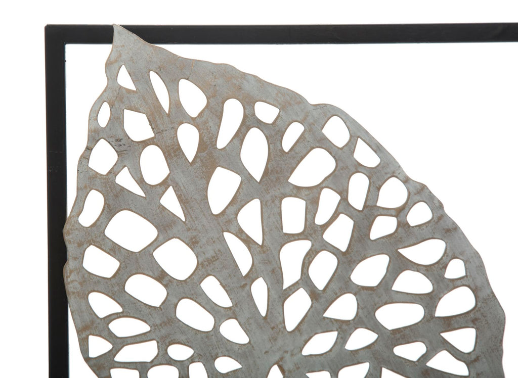 Pannello rettangolare con foglie in metallo. I pannelli 3D sono il nuovo trend per decorare le pareti. Il metallo laccato si declina in forme geometriche, vegetali o animali che conferiscono un'allure glamour e sorpendente ad ogni ambiente