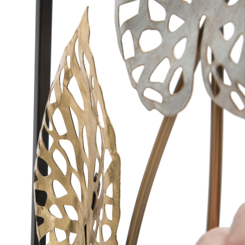 Pannello rettangolare con foglie in metallo. I pannelli 3D sono il nuovo trend per decorare le pareti. Il metallo laccato si declina in forme geometriche, vegetali o animali che conferiscono un'allure glamour e sorpendente ad ogni ambiente