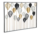 Pannello rettangolare con foglie in metallo. I pannelli 3D sono il nuovo trend per decorare le pareti. Il metallo laccato si declina in forme geometriche, vegetali o animali che conferiscono un'allure glamour e sorpendente ad ogni ambiente