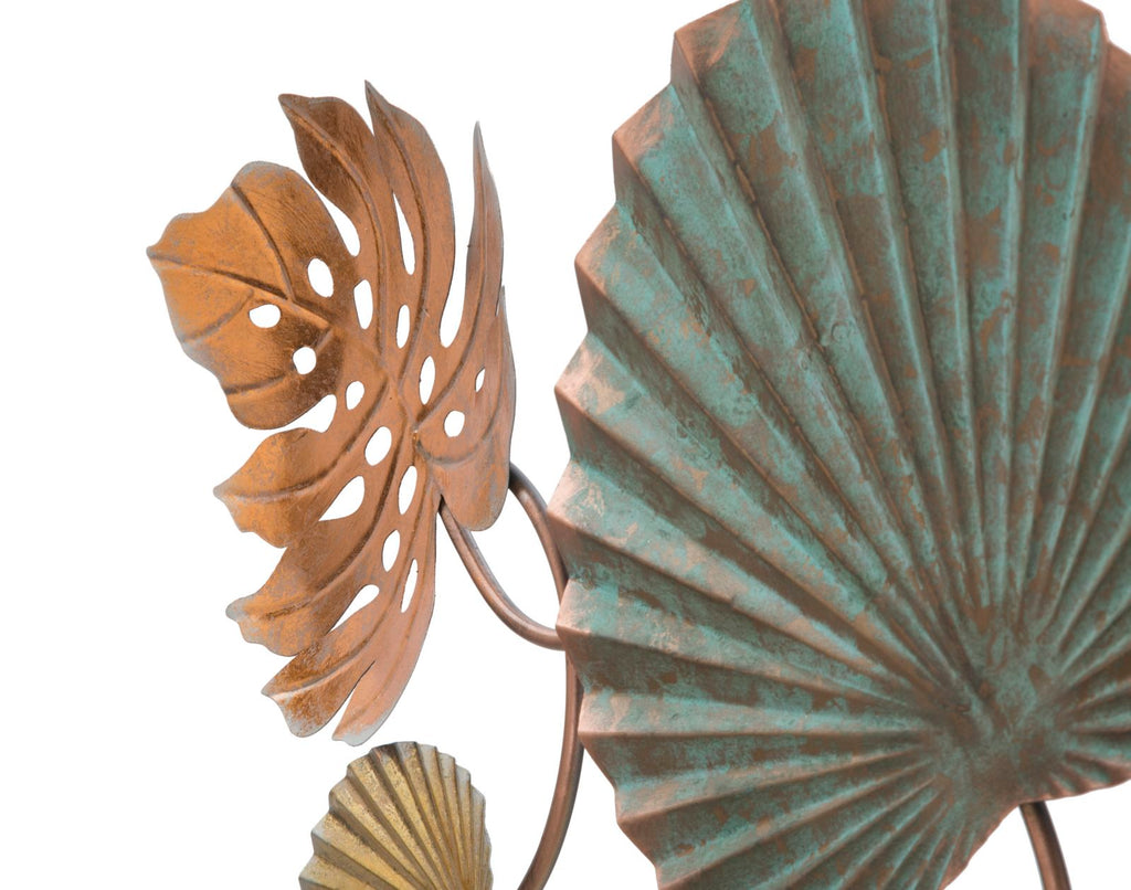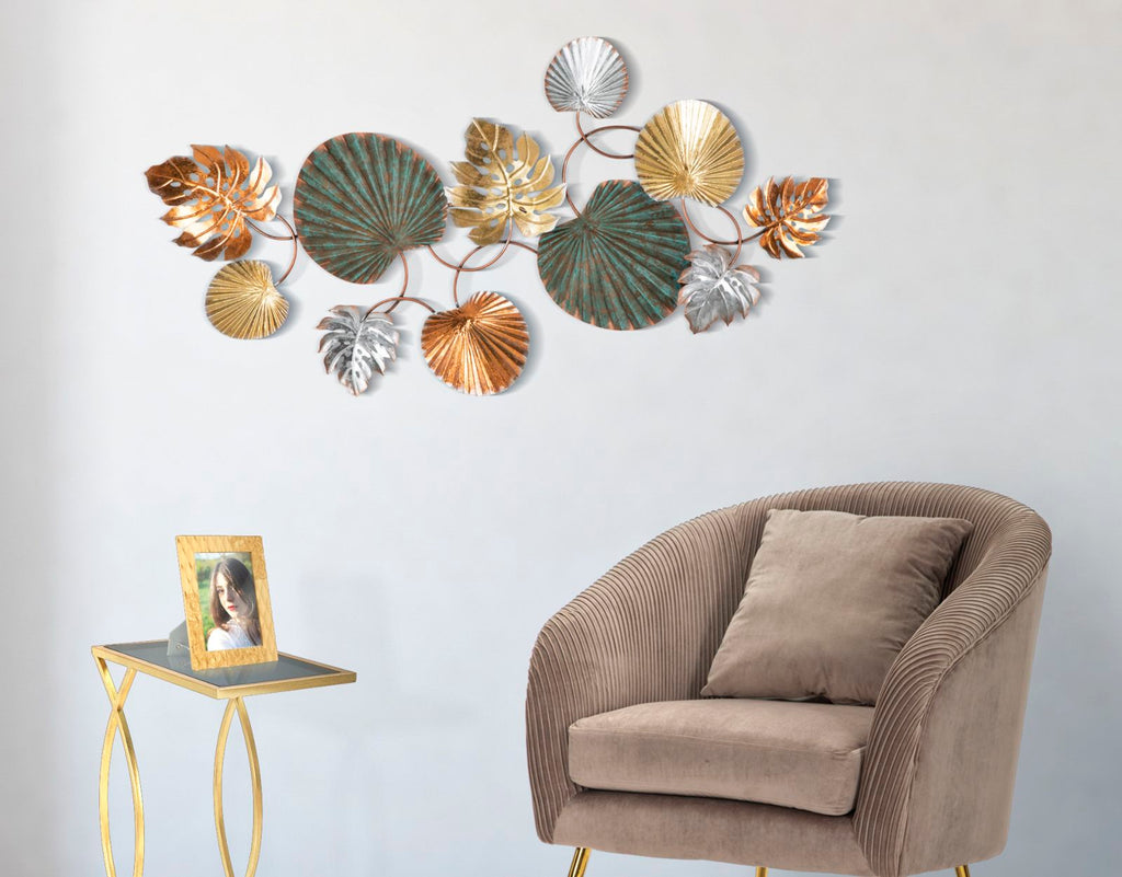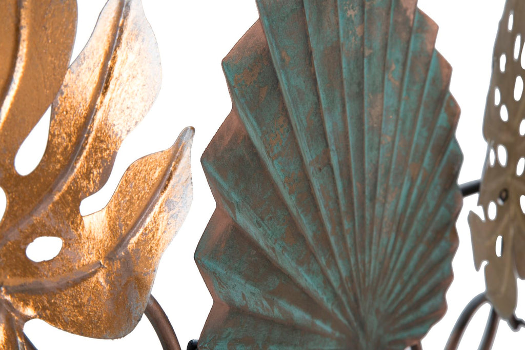 Pannello foglie in metallo. I pannelli 3D sono il nuovo trend per decorare le pareti. Il metallo laccato si declina in forme geometriche, vegetali o animali che conferiscono un'allure glamour e sorpendente ad ogni ambiente