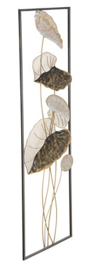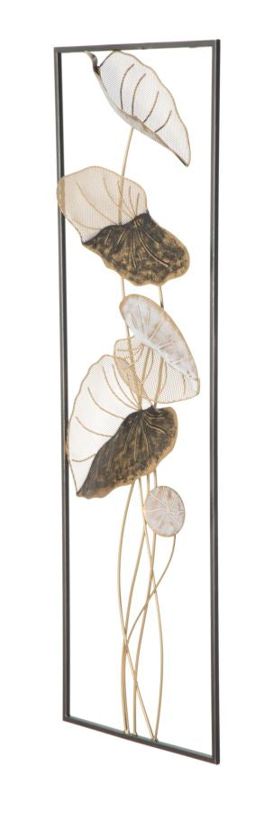 Pannello in metallo con foglie. La natura incontra l'arte. I pannelli 3D sono il nuovo trend per decorare le pareti. Il metallo si declina in forme geometriche, vegetali o animali che conferiscono un'allure glamour e sorpendente ad ogni ambiente