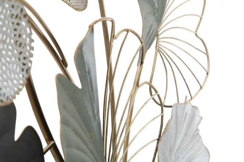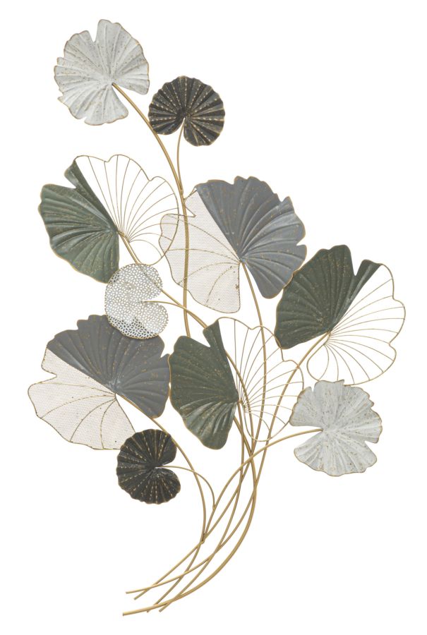 Pannello in metallo con foglie. La natura incontra l'arte. I pannelli 3D sono il nuovo trend per decorare le pareti. Il metallo si declina in forme geometriche, vegetali o animali che conferiscono un'allure glamour e sorpendente ad ogni ambiente