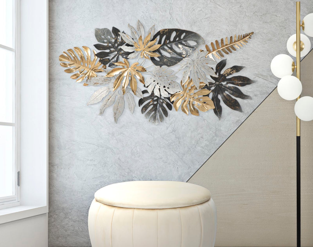 Pannello in metallo dal design che richiama la natura. I pannelli 3D sono il nuovo trend per decorare le pareti. Il metallo laccato si declina in forme geometriche, vegetali o animali che conferiscono un'allure glamour e sorpendente ad ogni ambiente.