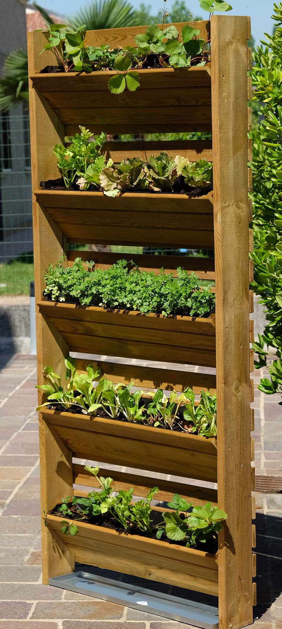 Pannello Orto Verticale 5 Contenitori 80x15x180 cm in Legno di Conifera Taini