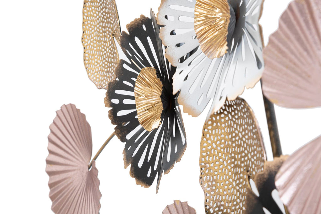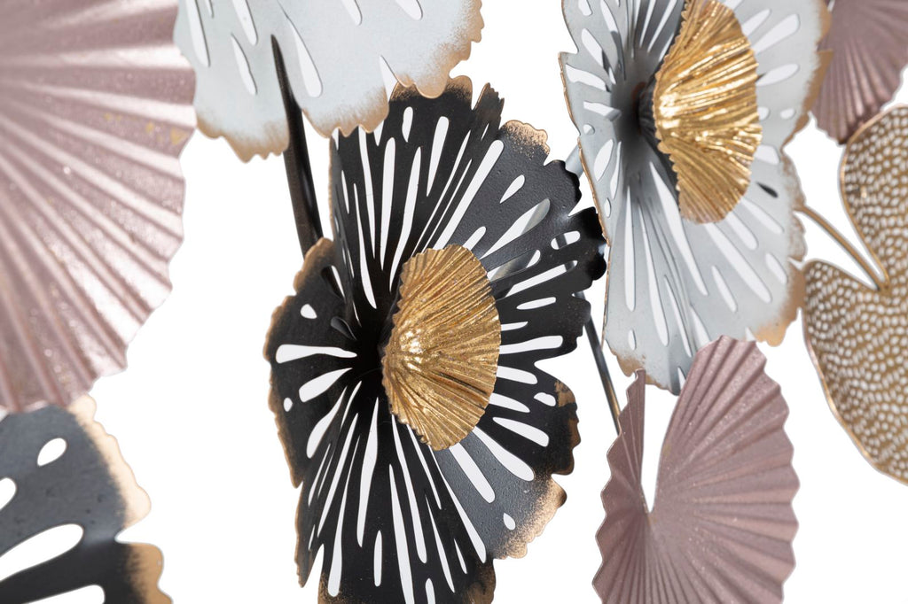 Pannello in metallo dal design floreale. I pannelli 3D sono il nuovo trend per decorare le pareti. Il metallo laccato si declina in forme geometriche, vegetali o animali che conferiscono un'allure glamour e sorpendente ad ogni ambiente.
