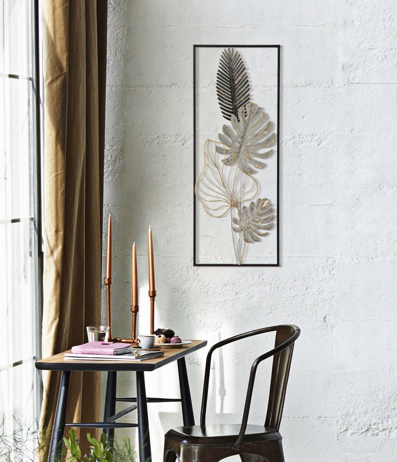 Pannello in metallo dal design che richiama la natura. I pannelli 3D sono il nuovo trend per decorare le pareti. Il metallo laccato si declina in forme geometriche, vegetali o animali che conferiscono un'allure glamour e sorpendente ad ogni ambiente.