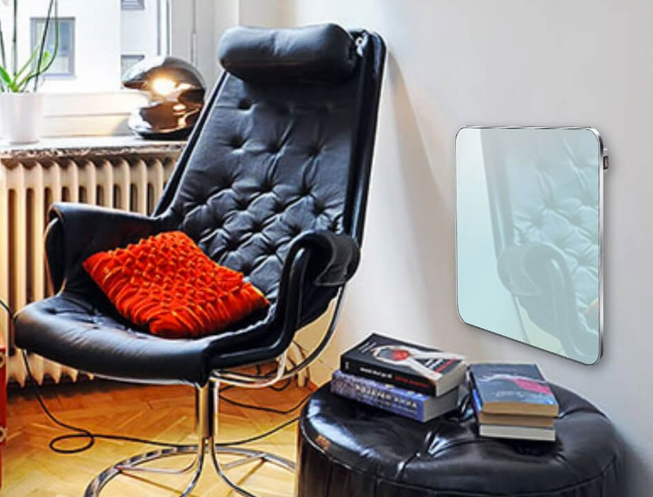 Pannello riscaldante da fissare al muro elegante finitura in vetro bianco, costruzione robusta con design ultraleggero e sottile. Filo di riscaldamento in silicone.