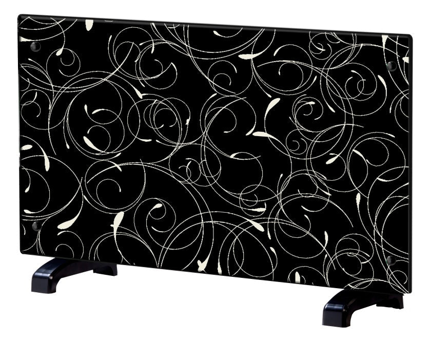 Pannello riscaldante Arabesque per soggiorno, spostabile per diventare un pannello riscaldante per camera da letto. Realizzato in acciaio con parte frontale in vetro temperato da 2000W per riscaldare ambienti di circa 30 mq. Posizionabile si a pavimento che a parete.