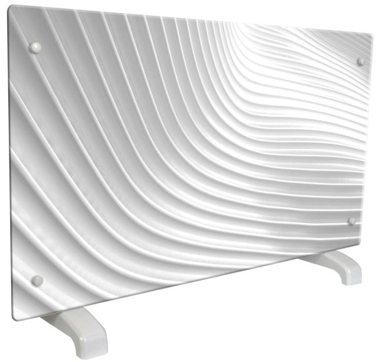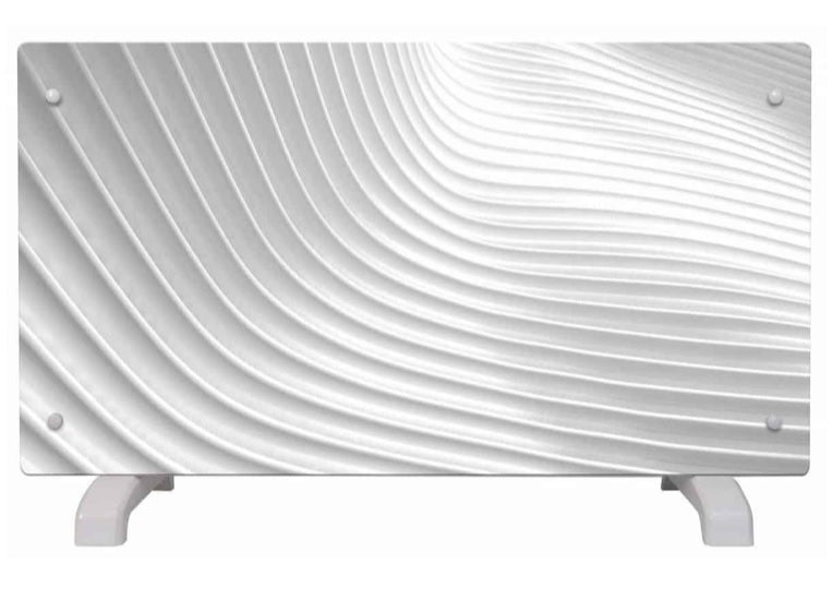 Pannello elettrico riscaldante con decoro a Onda. Realizzato in acciaio con parte anteriore in vetro Temperato, con potenza di 2000W, protezione anti surriscaldamento, 2 step di potenza 1000 e 2000W per riscaldare ambienti di circa 30 mq.