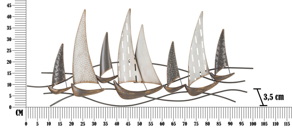 Pannello decorativo 3D in metallo con delle barche a vela che solcano il mare. Un tocco di libertà per ogni ambiente.