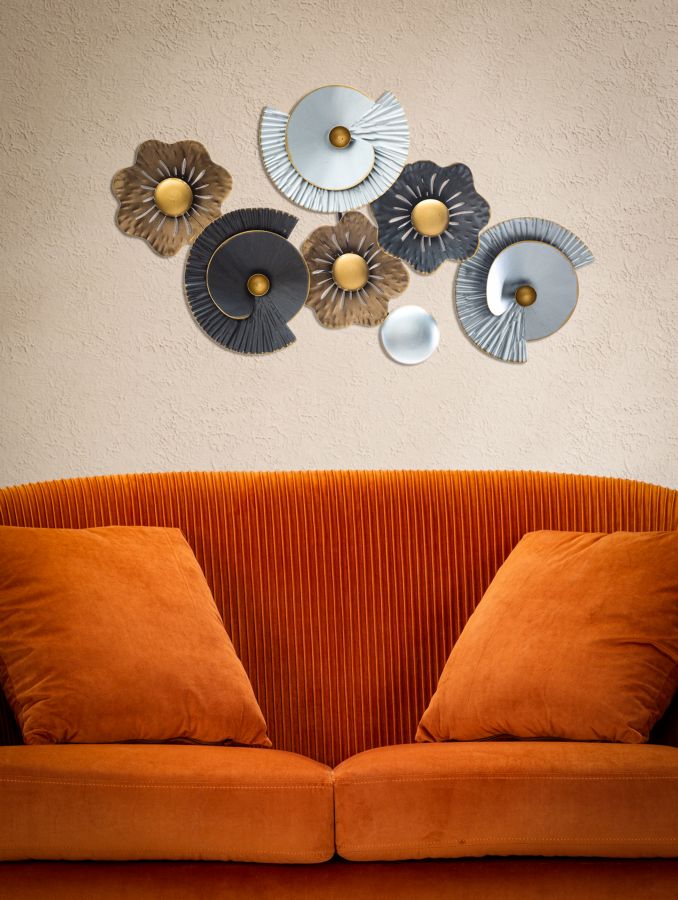 Pannello astratto in metallo. I pannelli 3D sono il nuovo trend per decorare le pareti. Il metallo si declina in forme geometriche, vegetali o animali che conferiscono un'allure glamour e sorpendente ad ogni ambiente