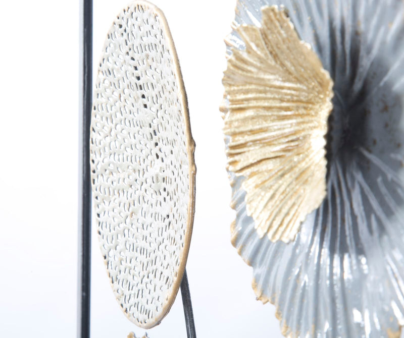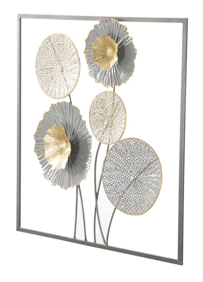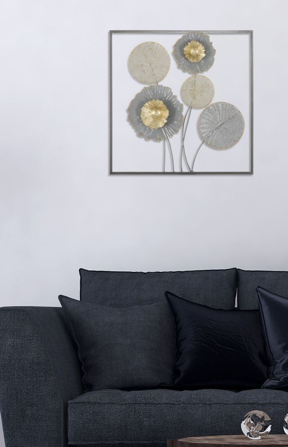 Pannello in metallo con fiori e foglie. La natura incontra l'arte. I pannelli 3D sono il nuovo trend per decorare le pareti. Il metallo si declina in forme geometriche, vegetali o animali che conferiscono un'allure glamour e sorpendente ad ogni ambiente