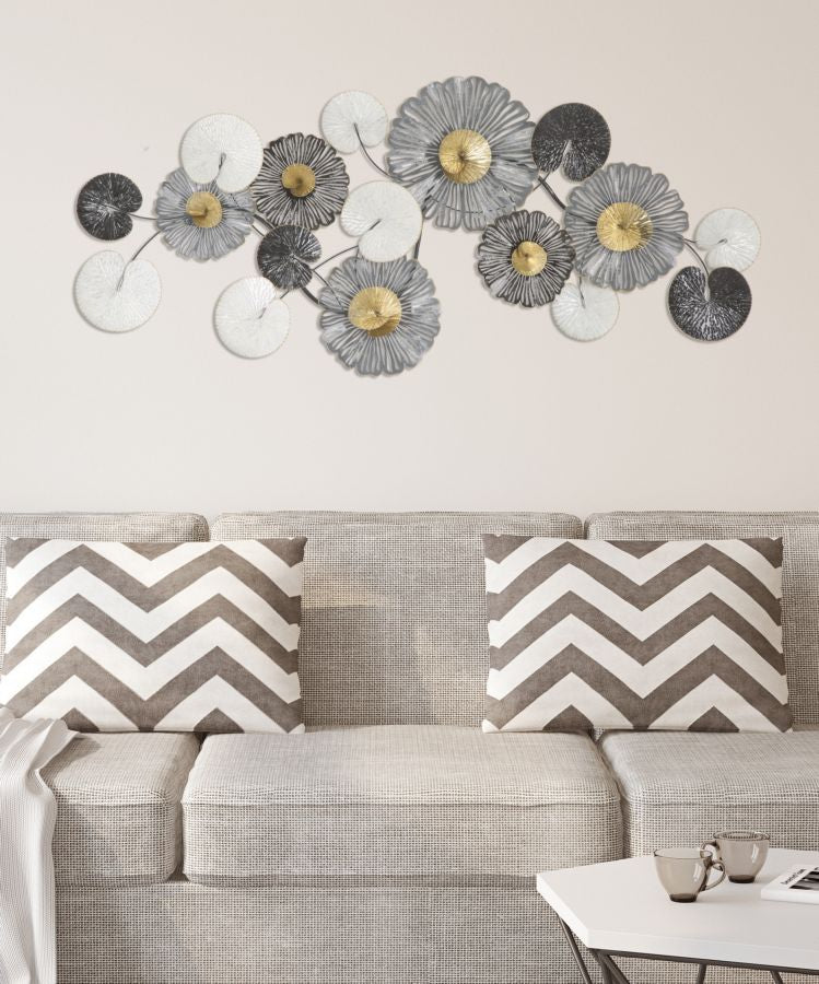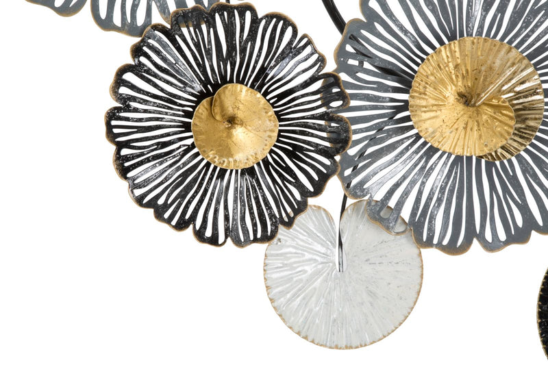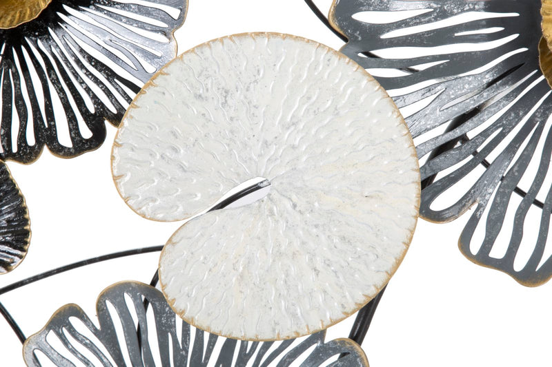 Pannello in metallo con fiori e foglie. La natura incontra l'arte. I pannelli 3D sono il nuovo trend per decorare le pareti. Il metallo si declina in forme geometriche, vegetali o animali che conferiscono un'allure glamour e sorpendente ad ogni ambiente