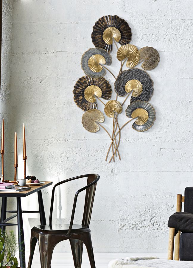 Pannello in metallo dal design che richiama la natura. I pannelli 3D sono il nuovo trend per decorare le pareti. Il metallo laccato si declina in forme geometriche, vegetali o animali che conferiscono un'allure glamour e sorpendente ad ogni ambiente.