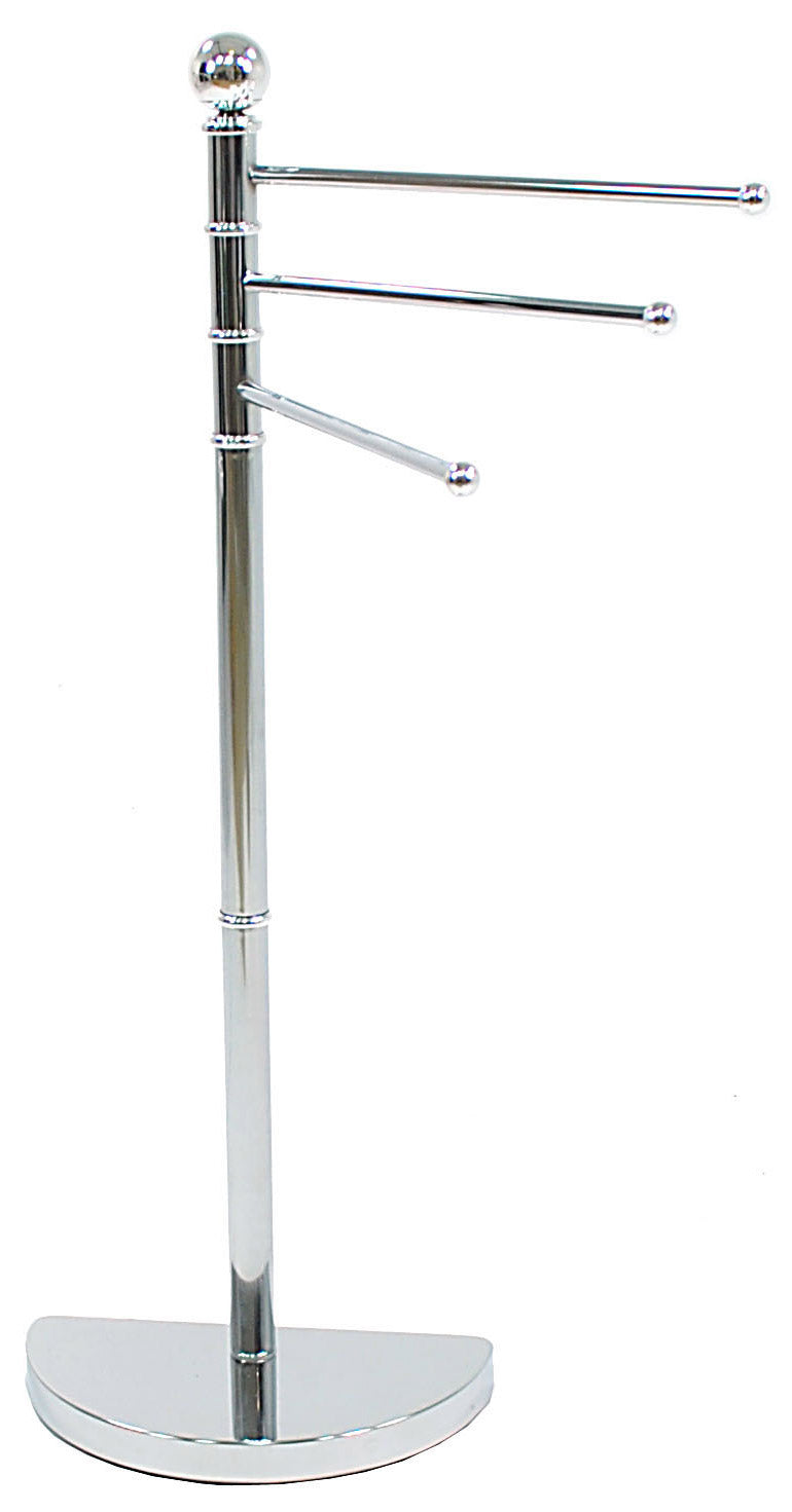 Portasciugamani A Stelo in Metallo Cromato con Base a Mezza Luna e 3 Piani.