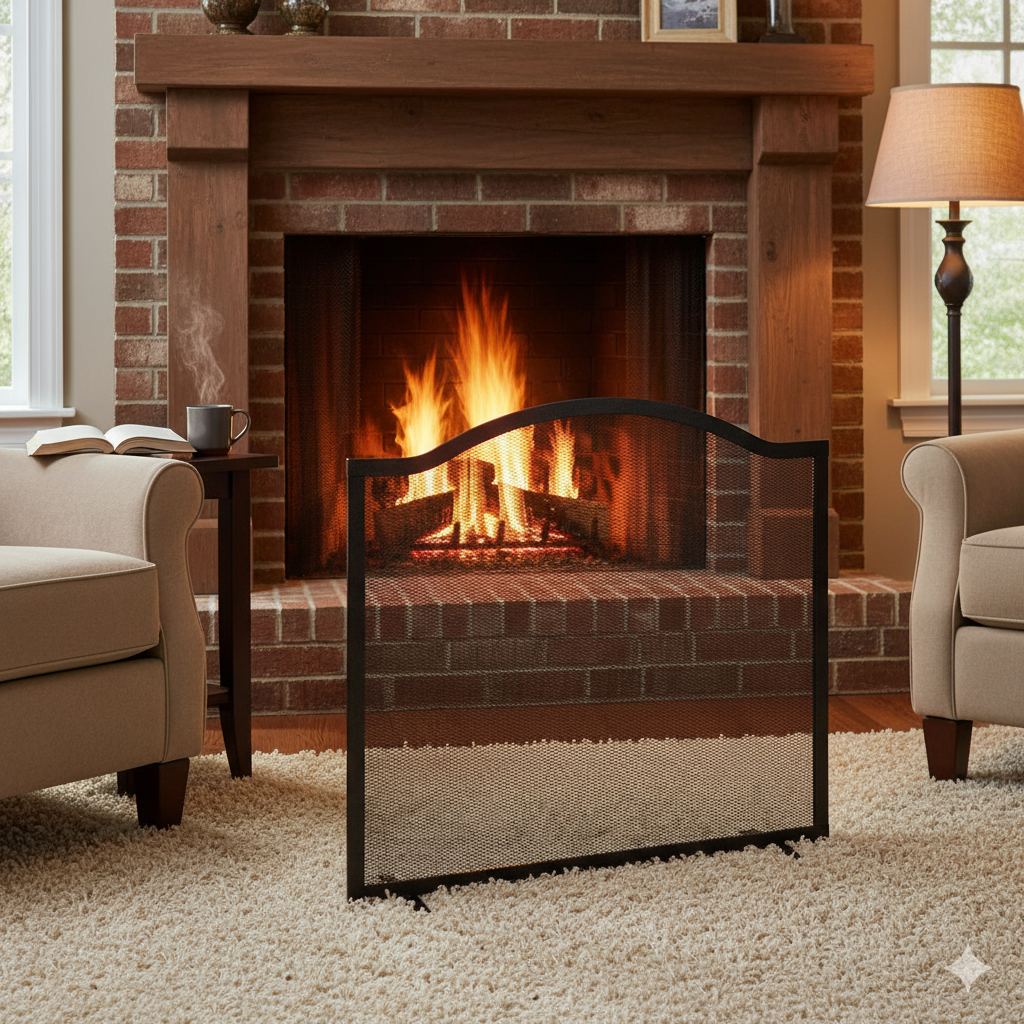 Parascintille per caminetto, cm 60xh58, realizzato con piatto in ferro mm 20x5 e rete stirata in ferro Sp. mm 0.8, verniciato colore grigio martellato, Made in Italy, facile da pulire un panno umido, montaggio non richiesto