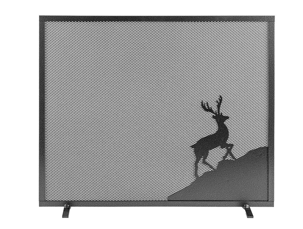 Parascintille per Camino a 1 Anta Design Cervo 60x51 cm in Ferro Verniciato Grigio Martellato