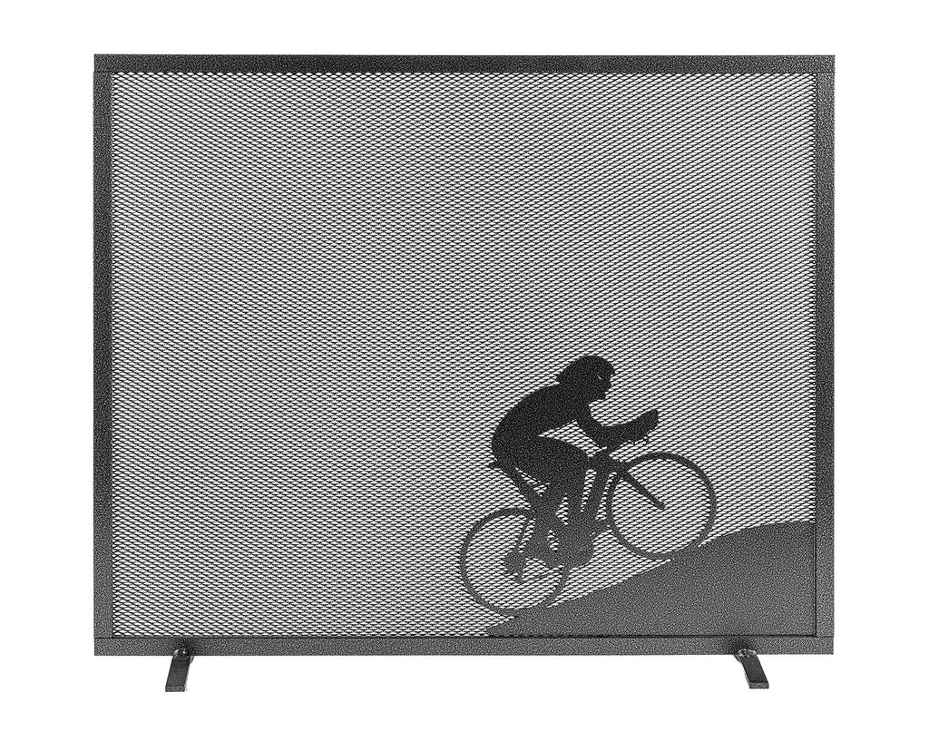 Parascintille per Camino a 1 Anta Design Ciclista 60x51 cm in Ferro Verniciato Grigio Martellato