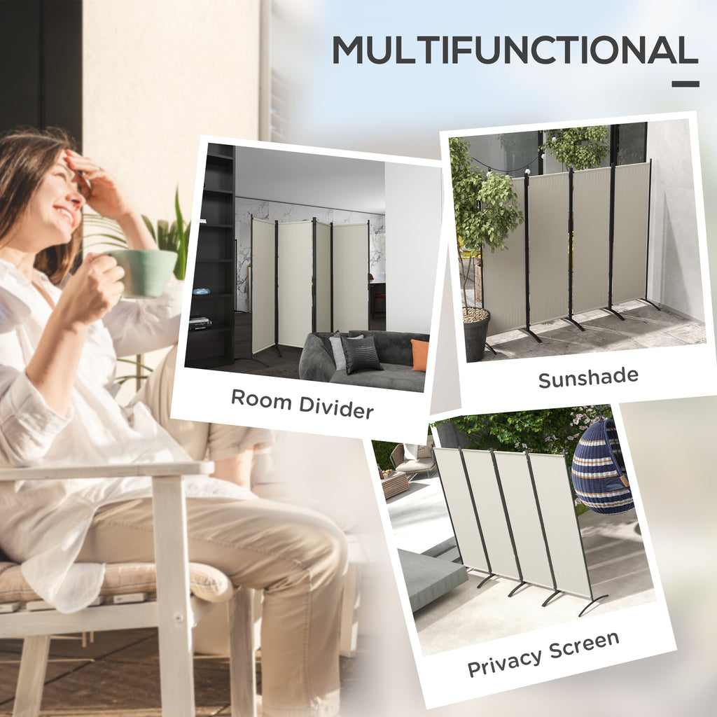 Paravento da Esterno e Interno a 4 Pannelli Pieghevole 221x50x172cm Crema