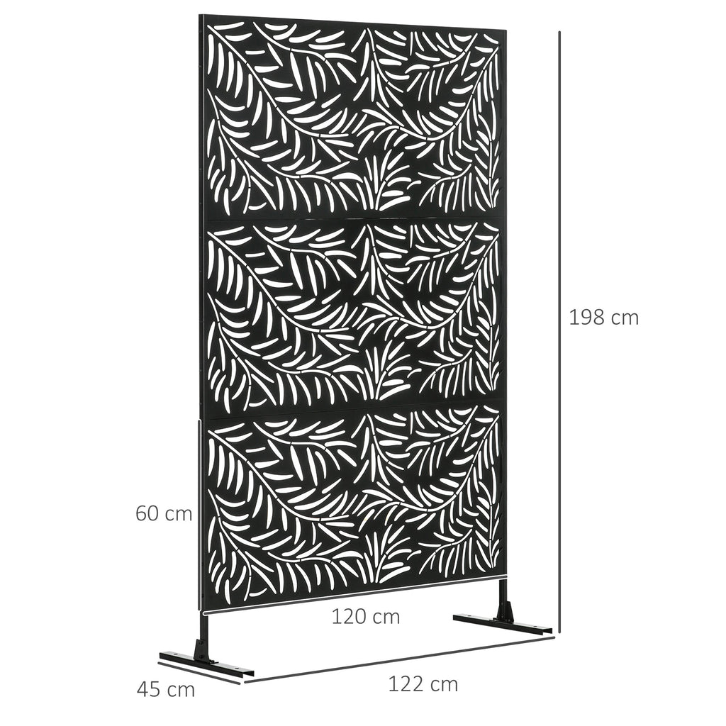 Il nostro paravento 122x198 cm aggiunge un tocco decorativo ed elegante ad ogni spazio esterno, creando il giusto livello di privacy per te e i tuoi ospiti. Realizzato in acciaio robusto con un design traforato che raffigura una pianta di salite, il divisorio si armonizza perfettamente con il contesto del giardino. La struttura è dotata di 2 gambe lunghe per garantire una maggiore stabilità. Paravento con telaio in acciaio con vernice protettiva per uso esterno. Divisorio ambiente con motivi di rami di salice intagliati per creare un aspetto piacevole. Struttura indipendente con due piedi per garantire l'equilibrio. 4 viti di espansione incluse nella confezione. Il divisorio da esterno crea un'area divisa in giardino o nel patio, ma è utilizzabile anche all'interno. Per avere maggiore stabilità, occorre aggiungere pesi. Montaggio richiesto.