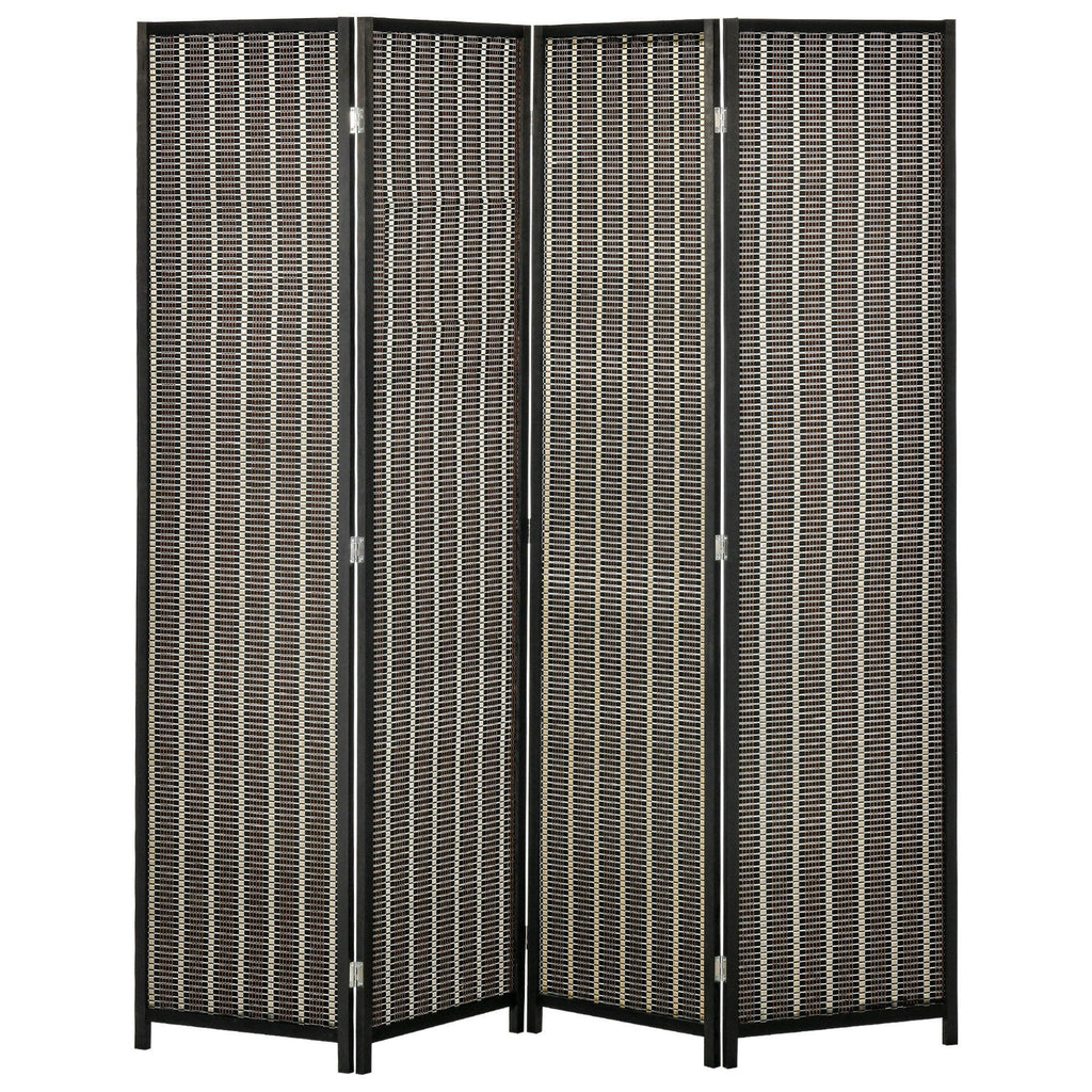 Paravento Separè Divisorio 4 Pannelli 180x1,9x180 cm in Bambù e Legno Marrone e Nero