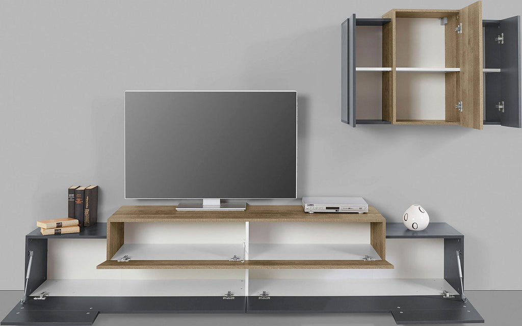 Parete Attrezzata Mobile TV e Pensile 240x45x51,5 cm Coro Grigio Antracite Opaco/Rovere Wotan