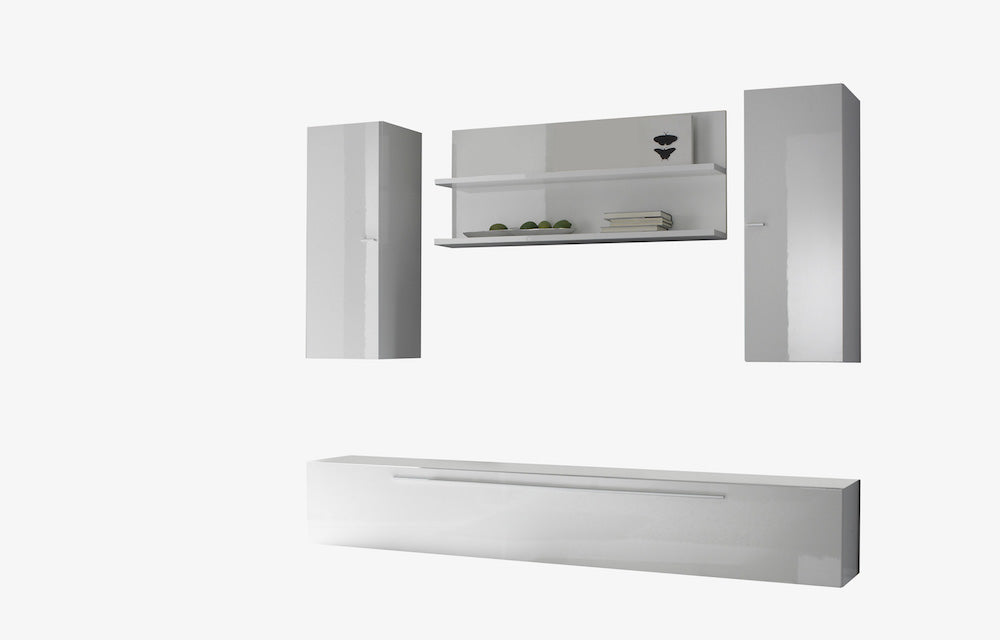 Set Mobili da Salotto 3 Mobili e Mensola Doppia 210x36x170cm TFT Primo Bianco Lucido