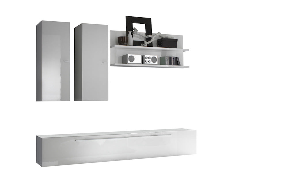 Set Mobili da Salotto 3 Mobili e Mensola Doppia 210x36x170cm TFT Primo Bianco Lucido
