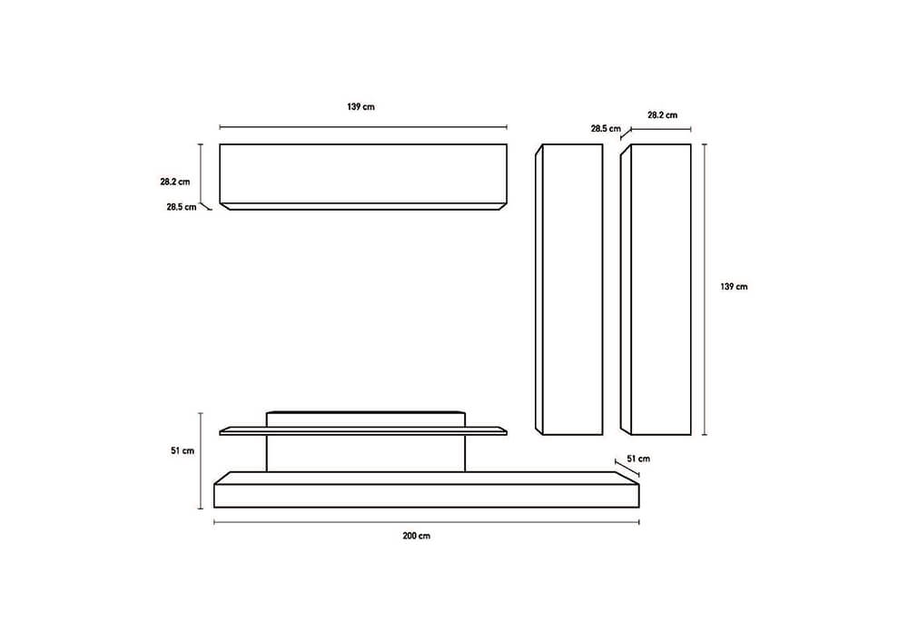 Parete Attrezzata Mobili Salotto Con 4 Mobili Sospesi I Singoli Elementi Possono Essere Posizionati In Posizione Differente DallImmagine a Seconda dei Vostri Gusti TFT Serie CubeCaratteristiche: