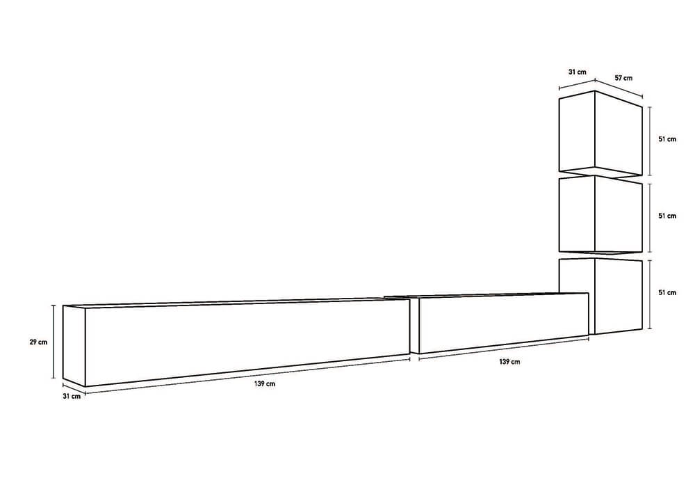 Parete Attrezzata Mobili Salotto Con 6 Mobili Sospesi I Singoli Elementi Possono Essere Posizionati In Posizione Differente DallImmagine a Seconda dei Vostri Gusti TFT Serie CubeCaratteristiche:
